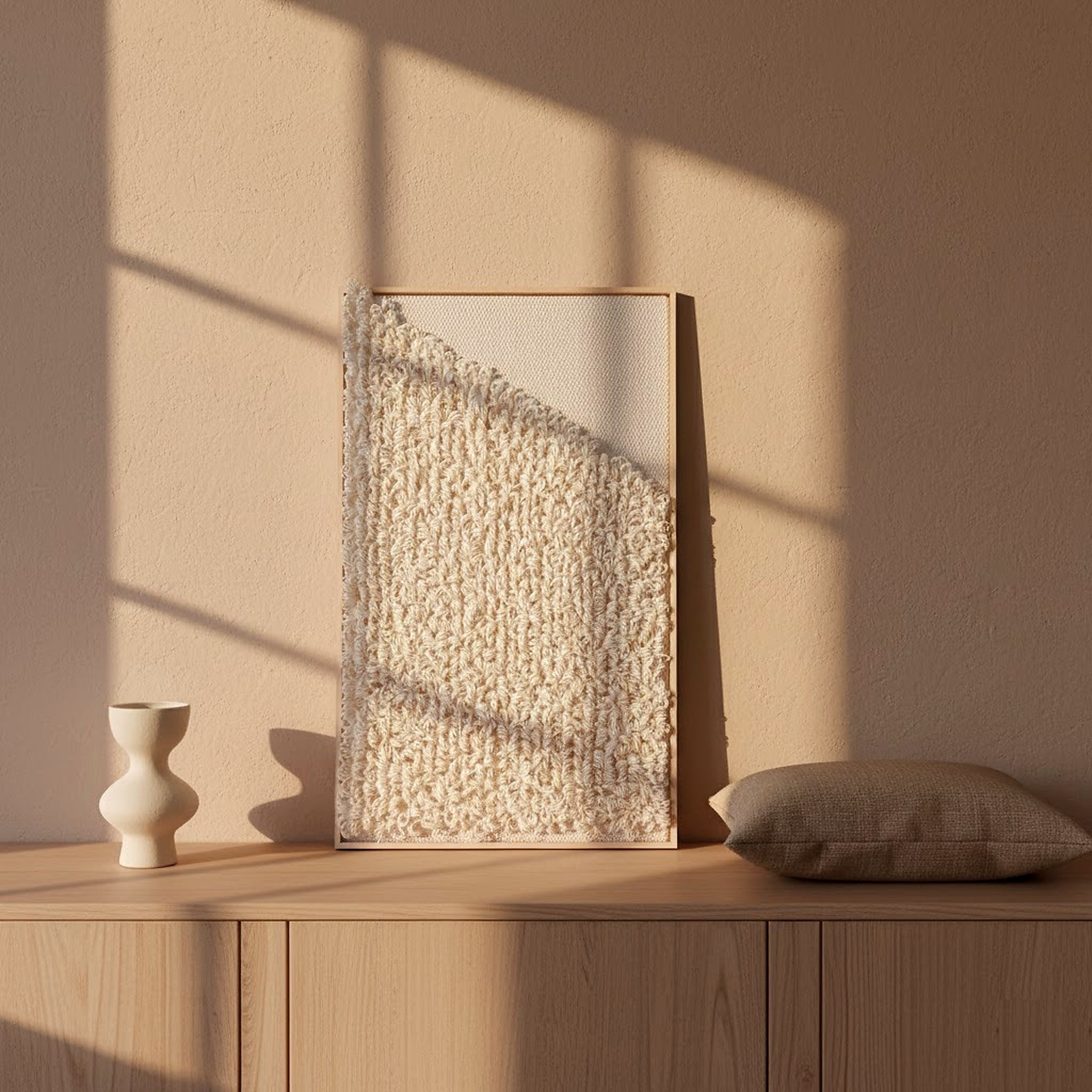 Whether you're looking for a sophisticated addition to your Living Room Decor or an elegant touch to your Bedroom Decor, our Textile Wall Art adapts to your unique style. Inspired by Japandi design, Framed 5 caters to those who appreciate minimalistic and refined aesthetics.