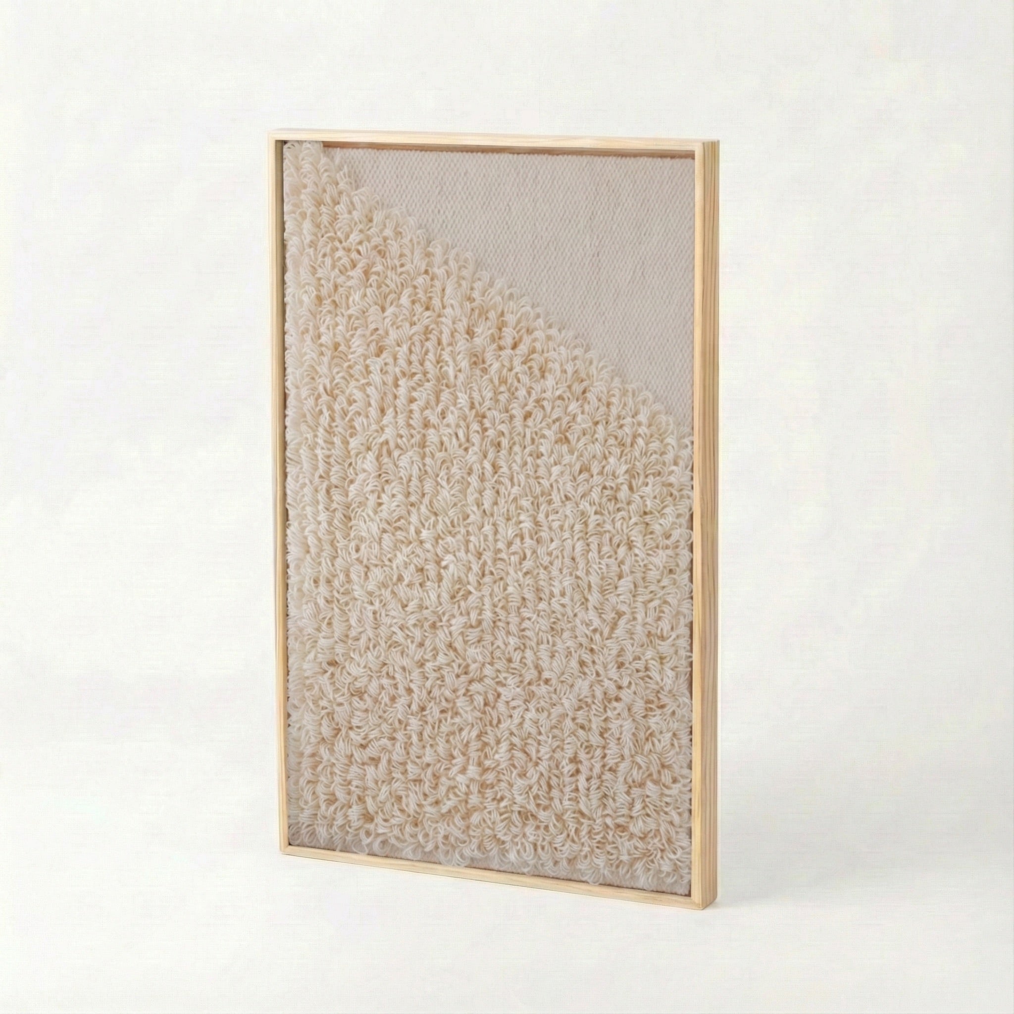 Framed 5 is a unique Wall Tapestry, meticulously handcrafted in our Polish workshop. Using only the finest wool in natural cream and beige shades, we create a refined Wall Decor, perfect for enhancing any interior.