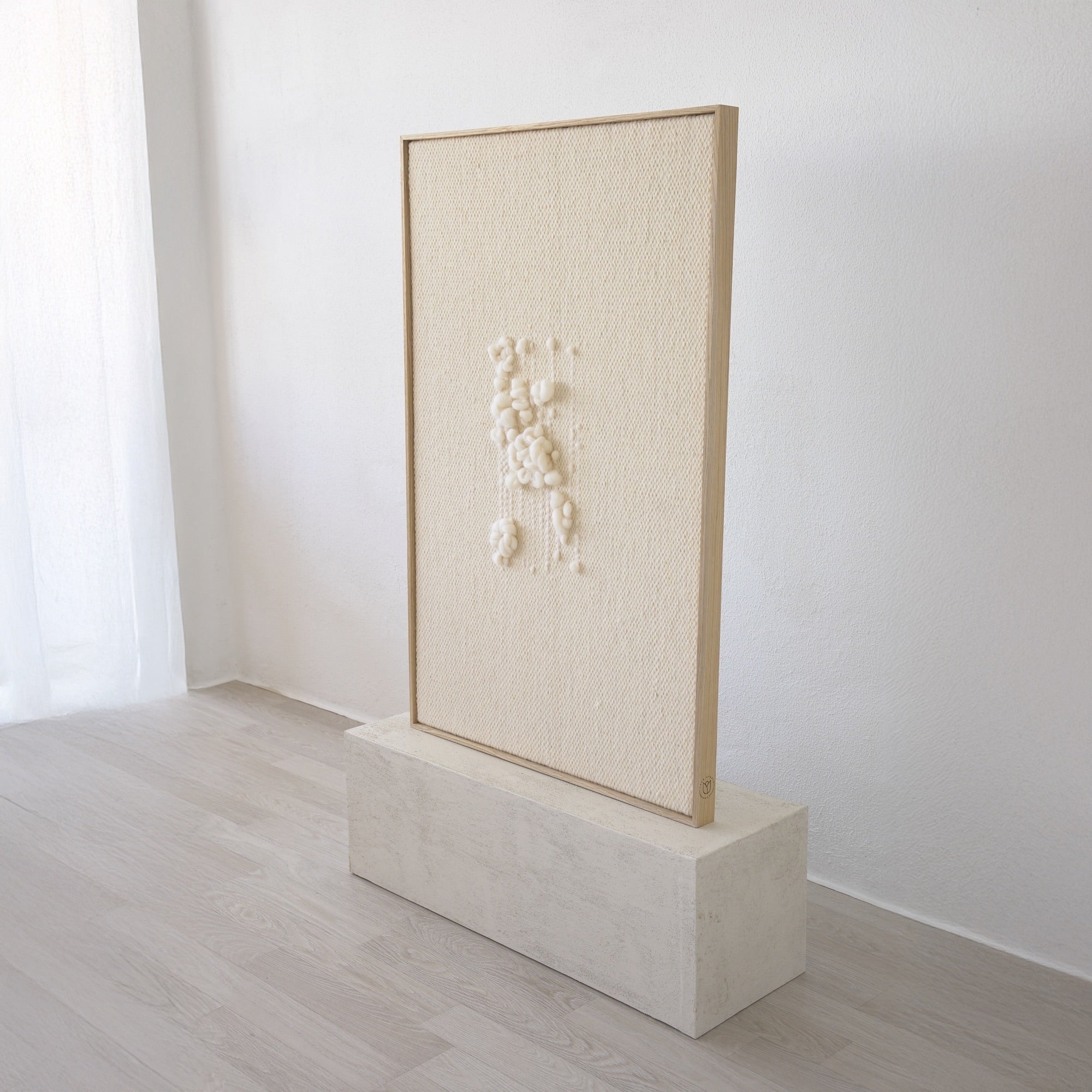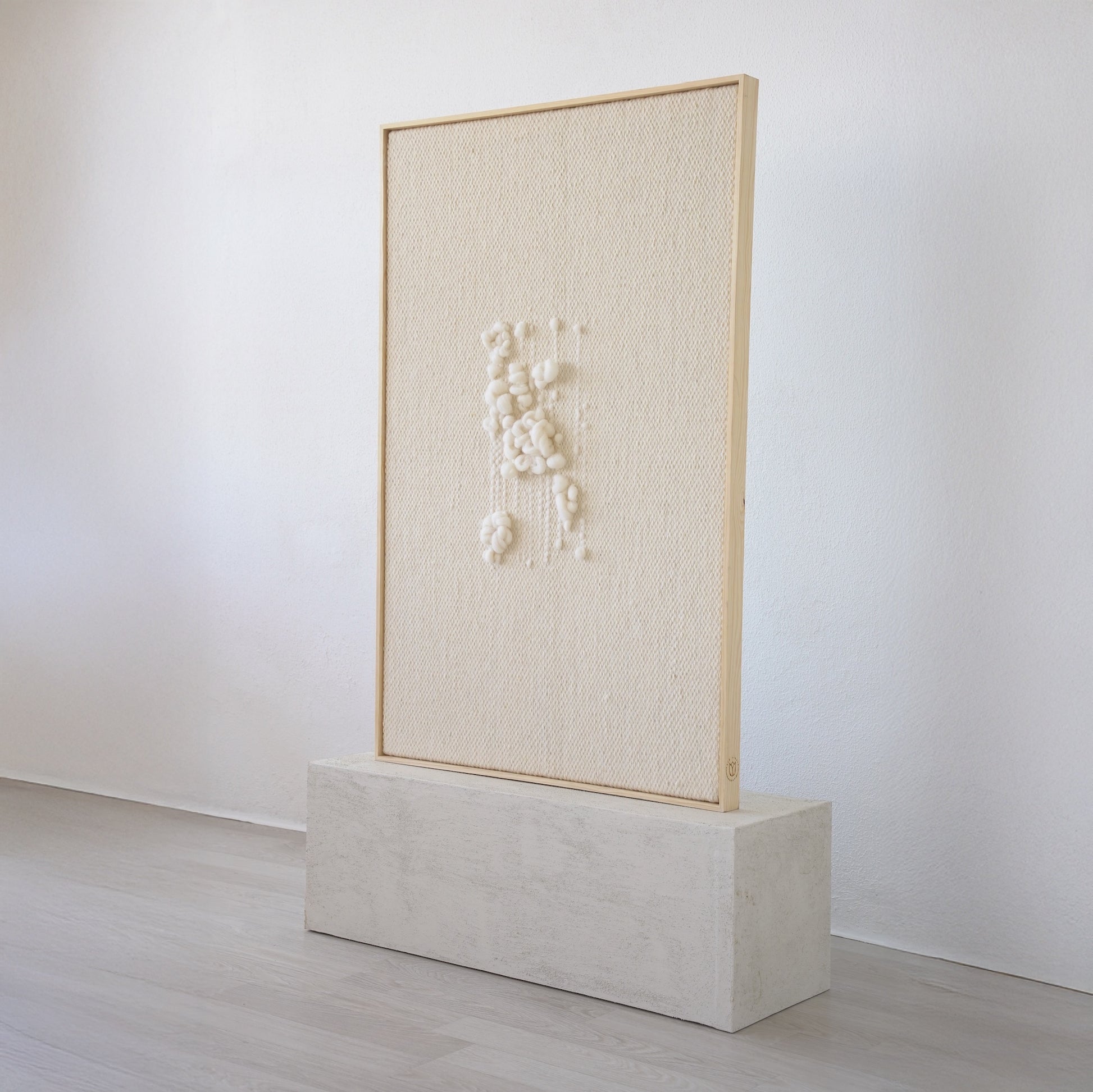 Introducing Klit, a handwoven tapestry made from the finest natural wool, carefully designed to reflect the simplicity and beauty of nature. Its soft texture and subtle patterns evoke organic shapes, perfectly fitting into the serene aesthetics of Japandi and Wabi Sabi styles. The natural wood frame elevates its look, making it ideal for modern or classic interiors that require a touch of warmth and sophistication.
