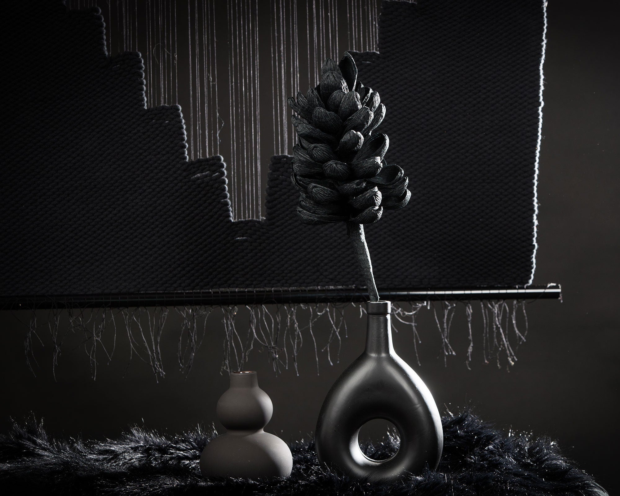 Lohe is handwoven on a traditional loom, showcasing the finest craftsmanship and attention to detail. Its deep black tones and unique textures bring a bold and timeless aesthetic to your home.