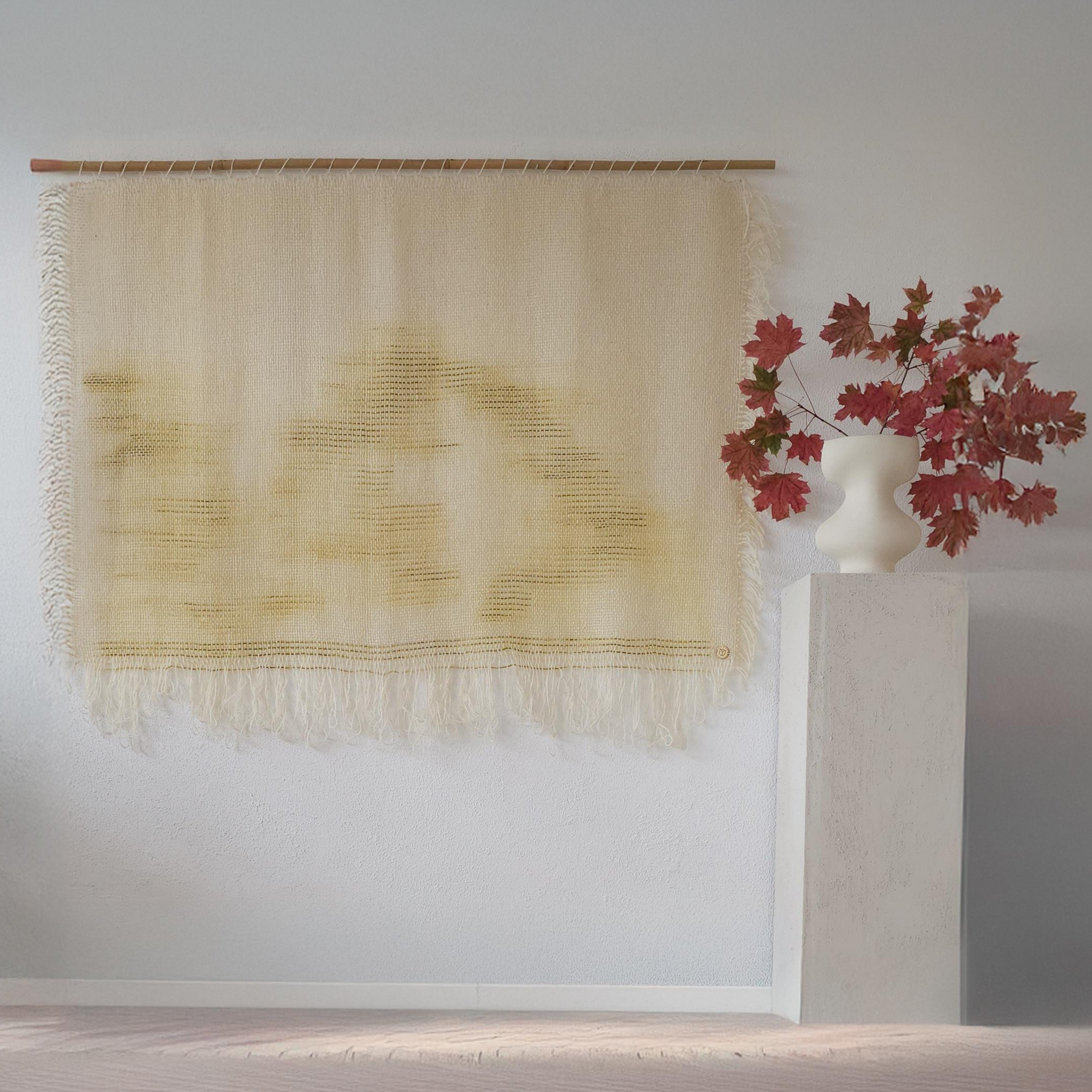 Measuring 63 inches wide (160 cm) by 48 inches tall (122 cm), O’mua Verde is designed to make an impact without overwhelming the space. Whether in a cozy living room, serene bedroom, or a creative studio, this wall hanging enhances the ambiance with its warm, natural elegance.