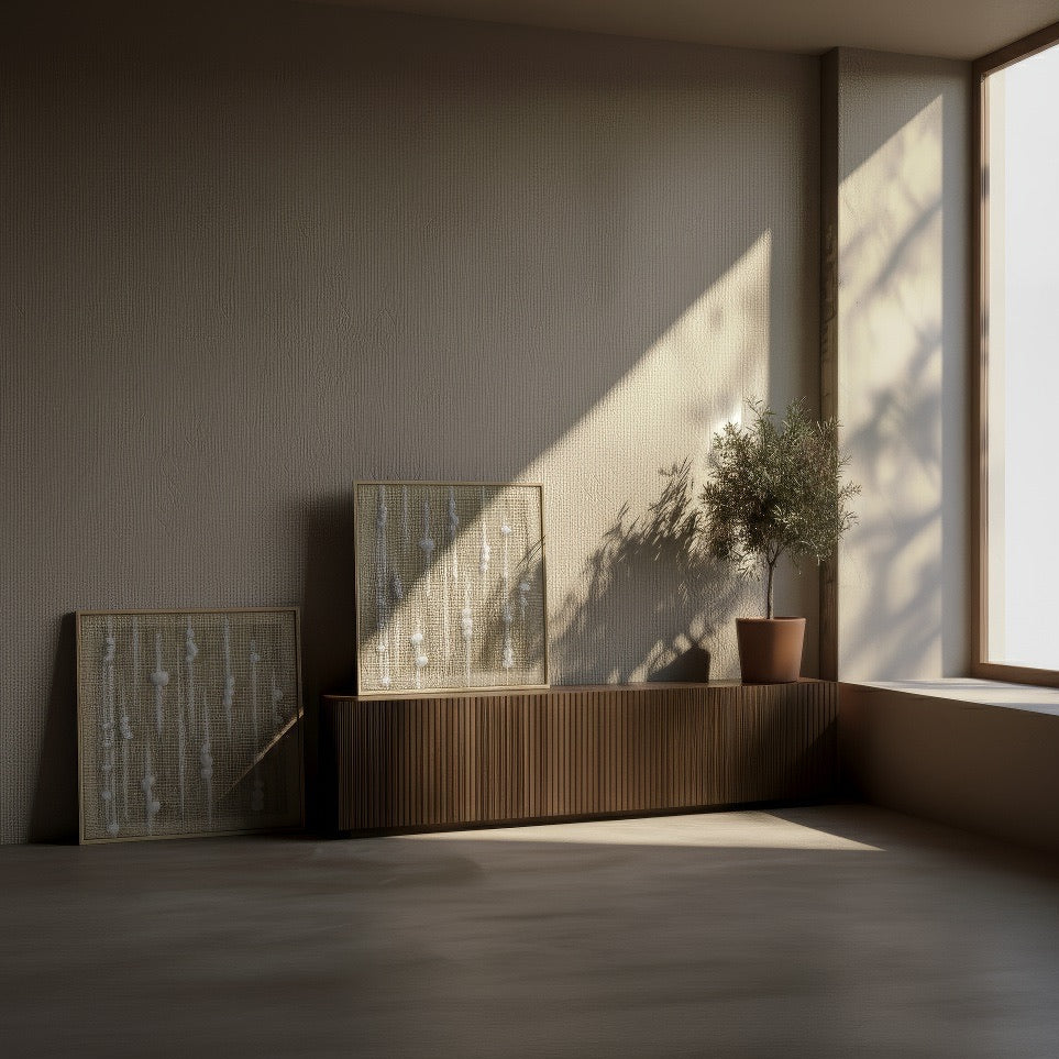 Olit - Minimalist Framed Wall Tapestry - Natural Wool and Wood Art