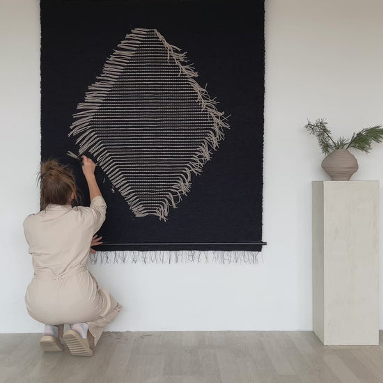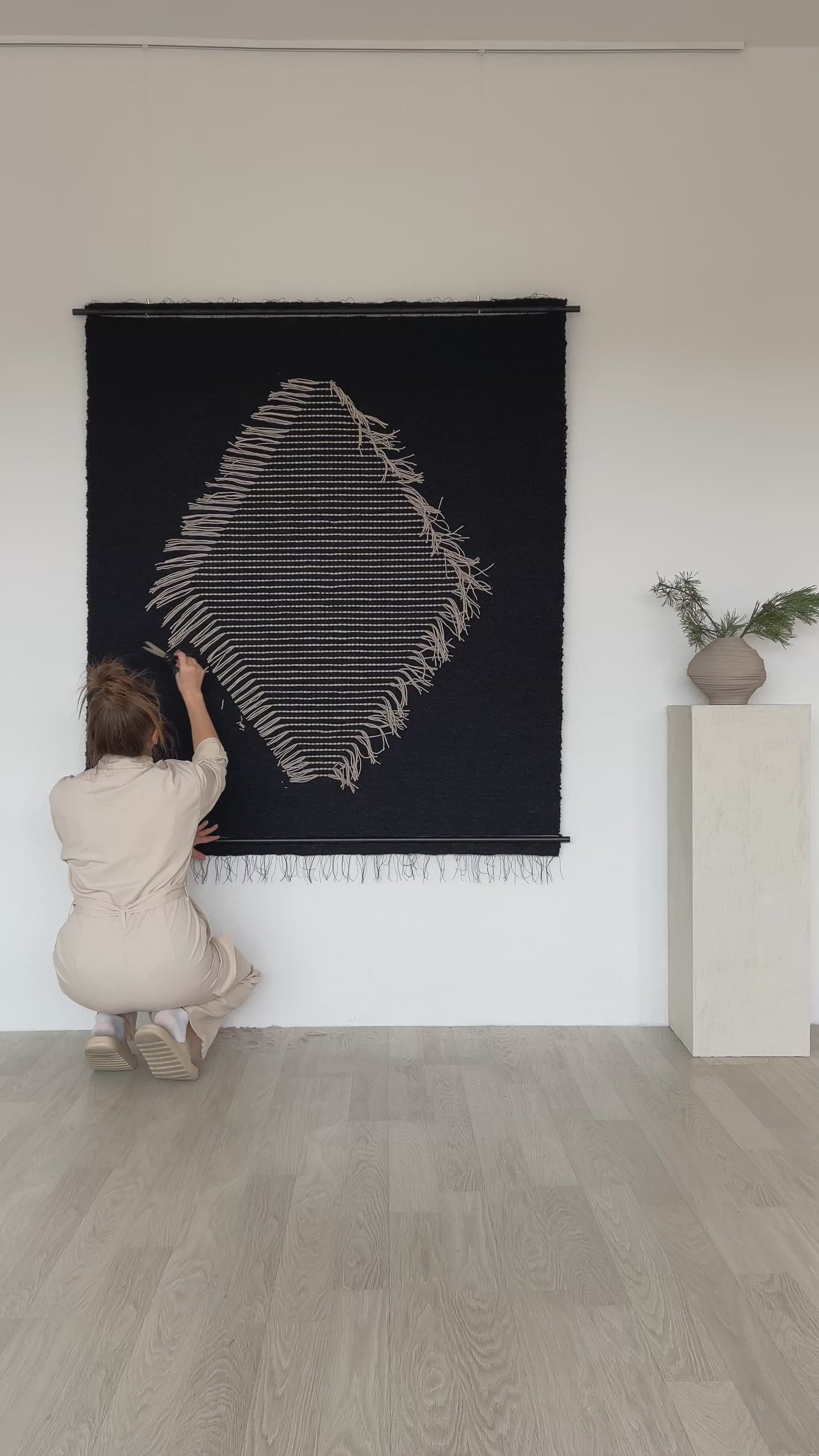 Rombo Black - Handwoven Natural Wool Wall Tapestry