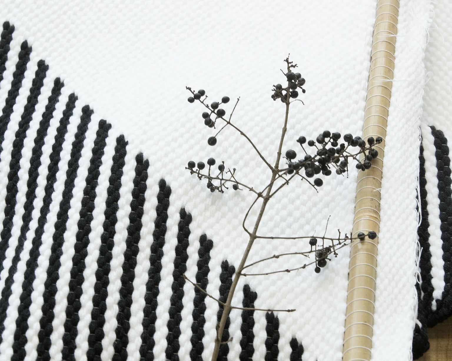 Handwoven with premium acryl yarns, Trian showcases a harmonious interplay of textures and contrasts. The bold geometric triangles in monochromatic tones bring balance and sophistication to any space, making it a versatile addition to diverse interior styles.
