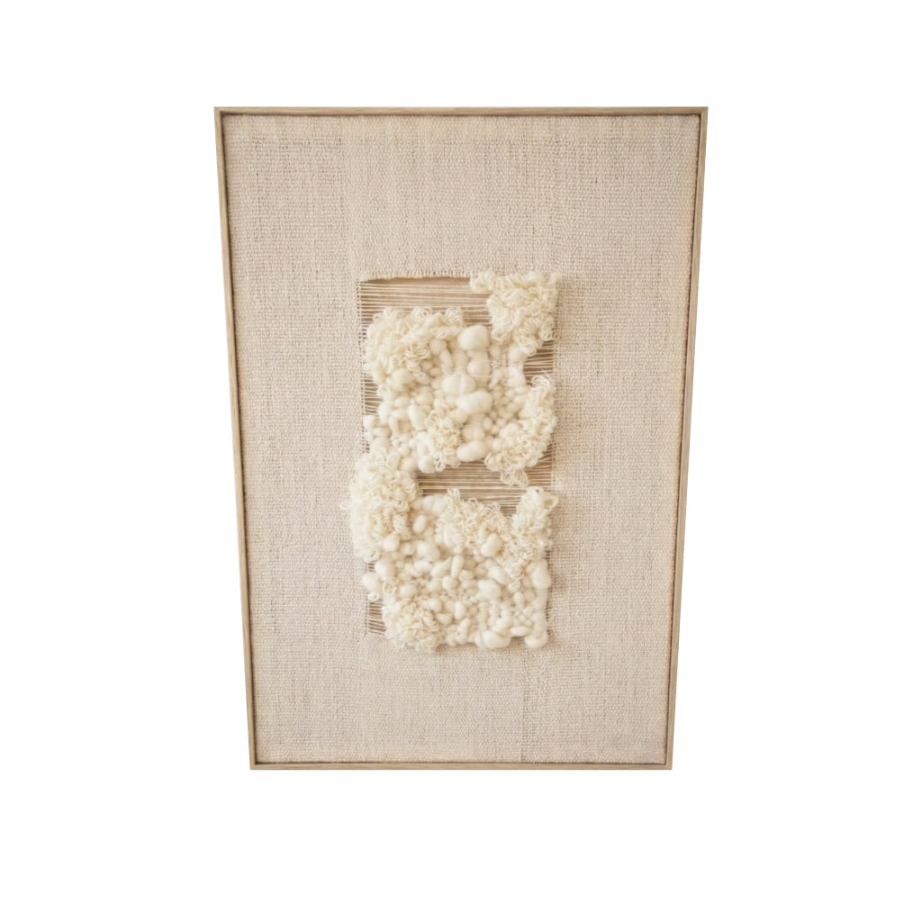 The neutral tones in raw white wool and organic texture make it versatile for different decor styles, ensuring it integrates effortlessly into any space. Perfect for modern homes, offices, or creative spaces seeking a touch of calm and beauty.