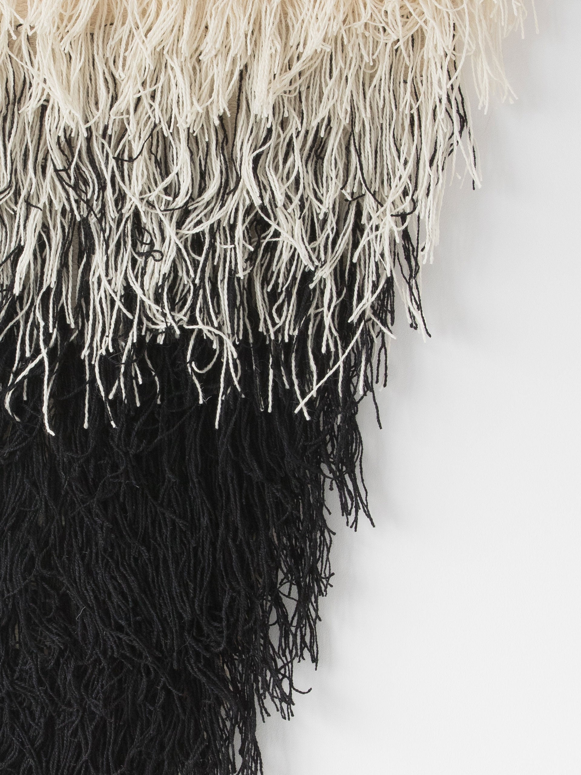 Introducing the Zen Tapestry, a visually captivating wall hanging designed to add sophistication and tranquility to your home. This handmade masterpiece combines the natural warmth of wool with the sustainability of bamboo, resulting in a gradient design that transitions effortlessly from natural beige to deep black. The elegant triangular shape and cascading fringe details make it the perfect fit for Scandinavian, Japandi, boho, and minimalist spaces.
